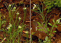 Cardamine hirsuta (left) and Cardamine flexuosa (right) have become widespread weeds in western Washington and Oregon. Both would key to, and be easily confused with, native species in the 1973 flora. (photos: Ben Legler)
