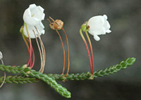 Cassiope lycopodioides occurs primarily in coastal Alaska and British Columbia. it has since been found on Vancouver Island and in the Cascade mountains in Washington. The Washington populations occur on steep rock faces and cliffs, and may represent isolated relictual populations persisting from past glacial periods. (photo: Ben Legler)