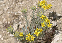Physaria douglasii ssp. tuplashensis was discovered in the 1990s during inventories of the Hanford Reservation and adjacent areas in Eastern Washington. It is a local endemic restricted to a band of calliche soils. The genus Lesquerella, under which this taxon was first published, has since been merged into Physaria. (photo: Rod Gilbert)