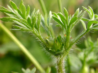 Soliva sessilis, forming low carpets in lawns, is so inconspicuous as to almost escape notice. Yet its sharply spiny fruits and tendency to grow in parks and on swimming beaches where people go barefooted have landed it a place on noxious weed lists. New populations of this introduced weed continue to be found in western British Columbia, Washington, and Oregon. (photo: Ben Legler)